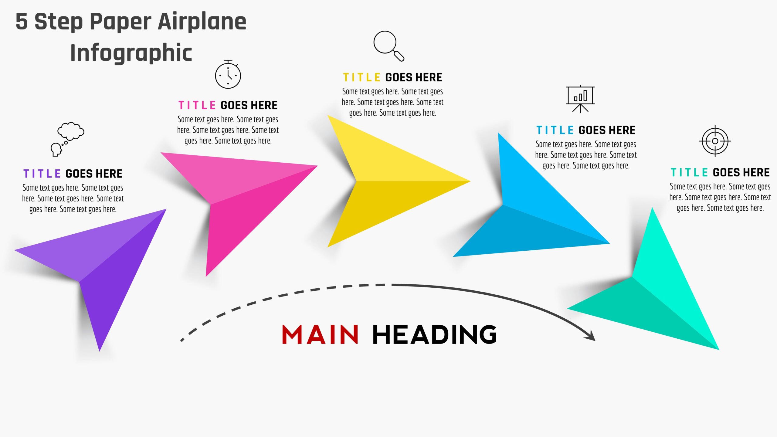 69.PowerPoint 5 Step Paper Airplane Infographic